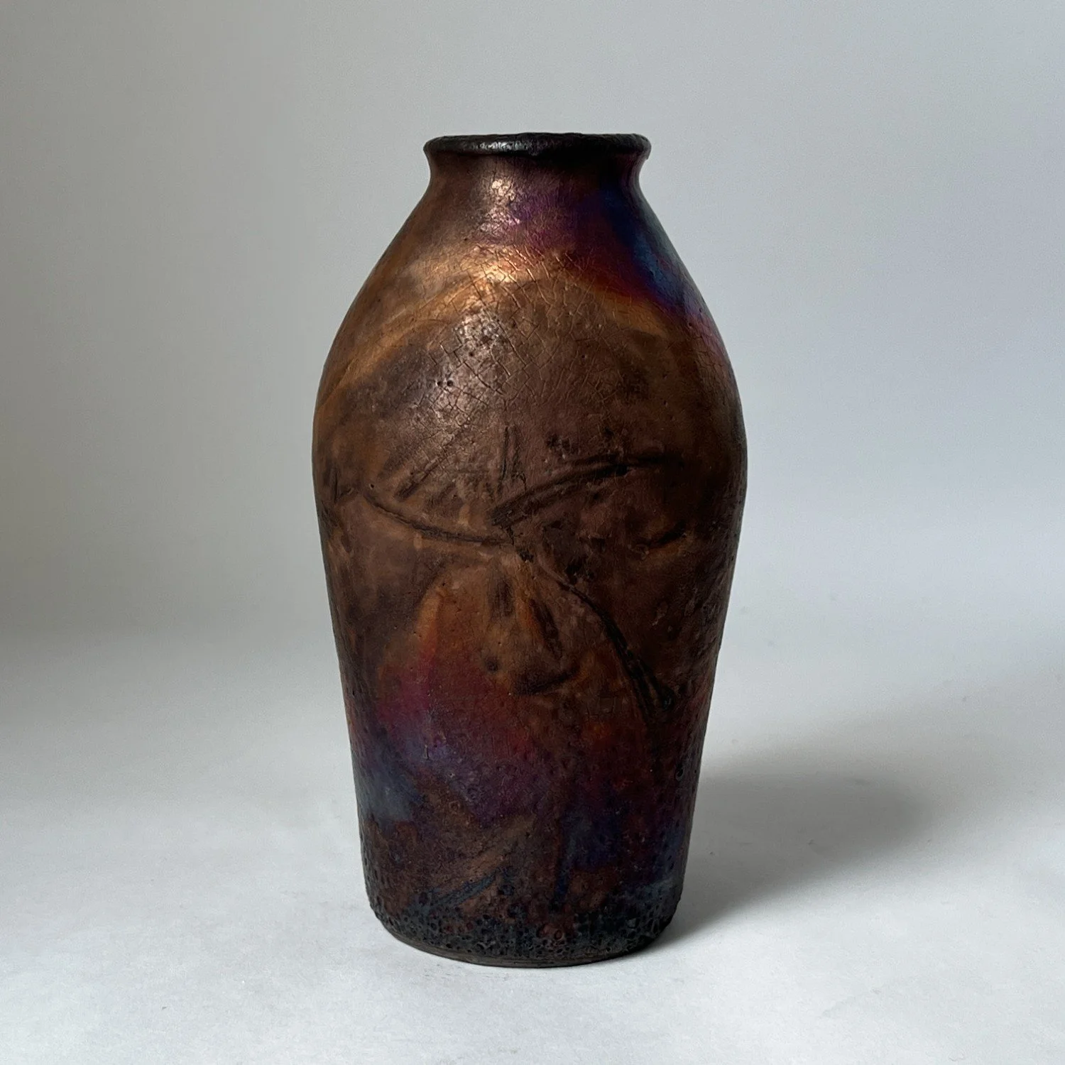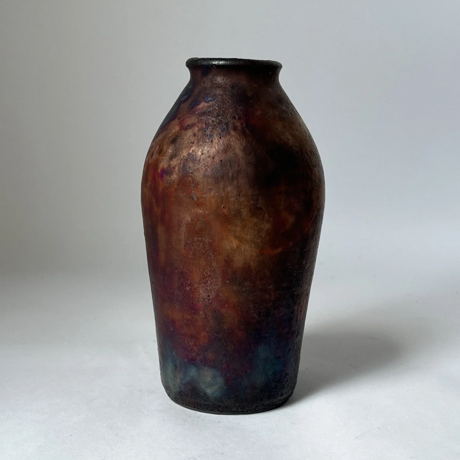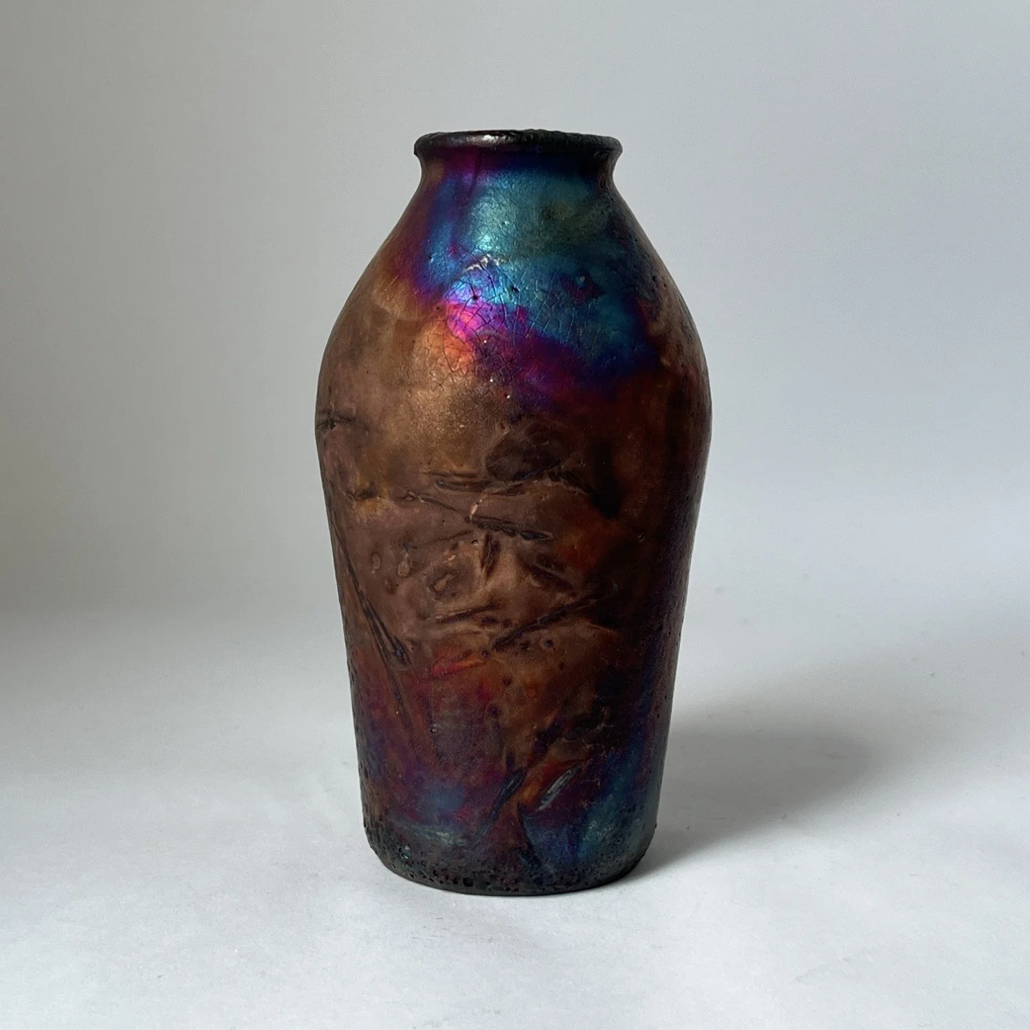 Wheel-thrown, covered with luster glaze and fired multiple times in reduction. Will not hold water.