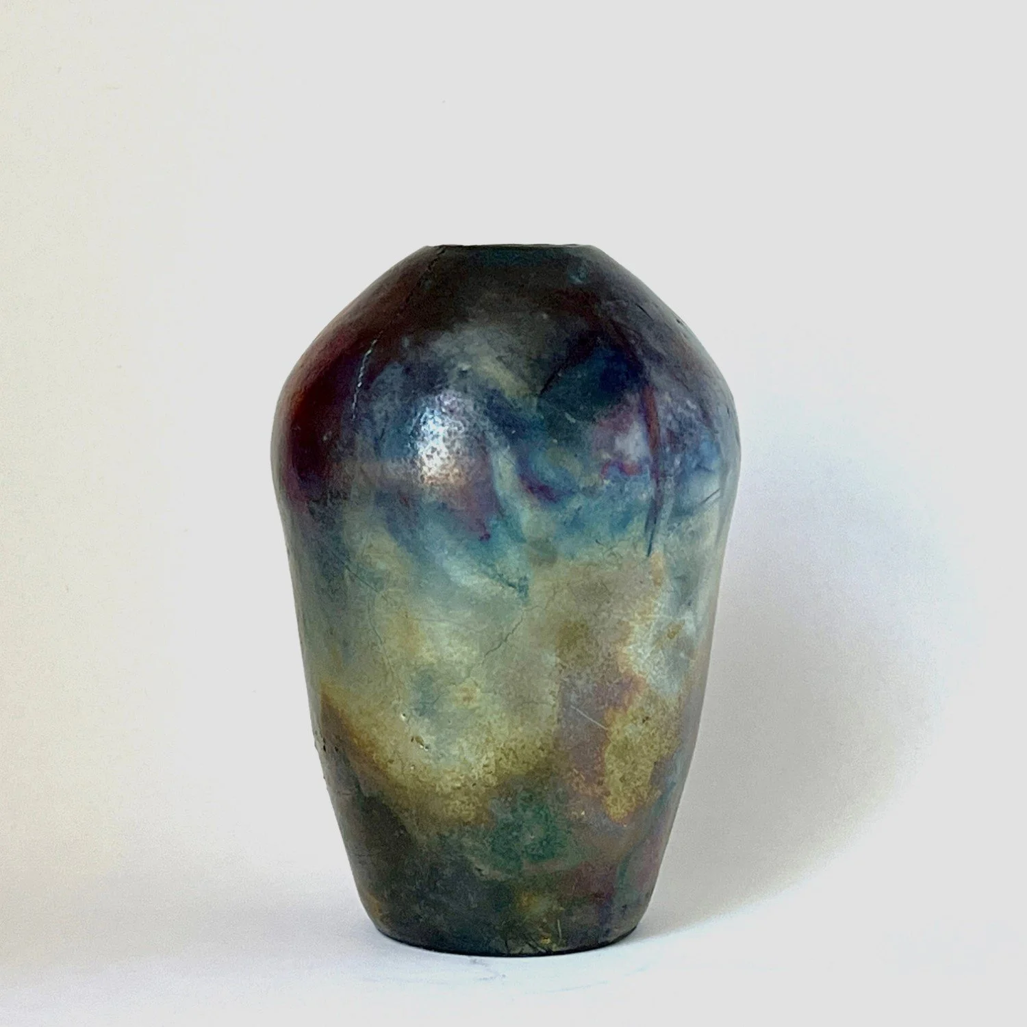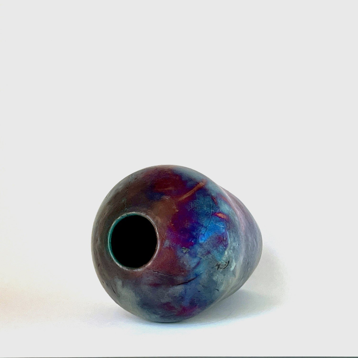 Wheel-thrown, covered with luster glaze and fired multiple times in reduction. Will not hold water.